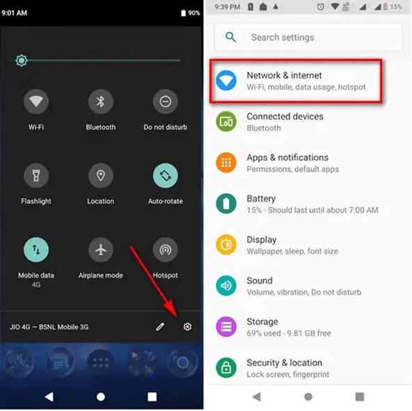 ۱. به تنظیمات گوشی و سپس بخش Network & Internet بروید.
