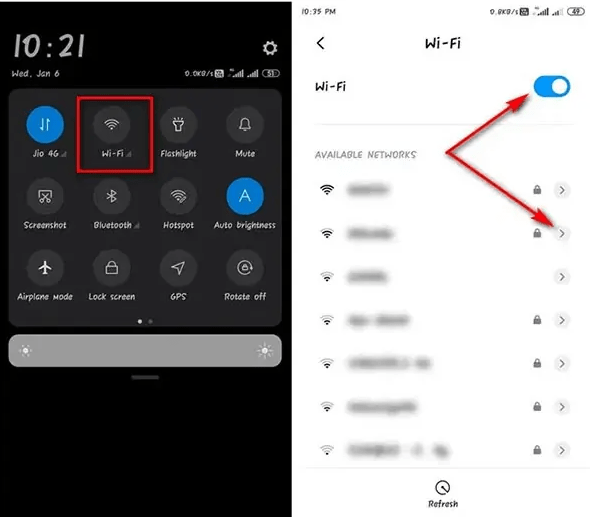 ۱. برای این که تنظیمات شبکه وایفای را تغییر دهید، ابتدا وایفای را روشن کنید و سپس با لمس و نگهداشتن علامت وایفای در تنظیمات سریع، به صفحه تنظیمات وایفای بروید.
